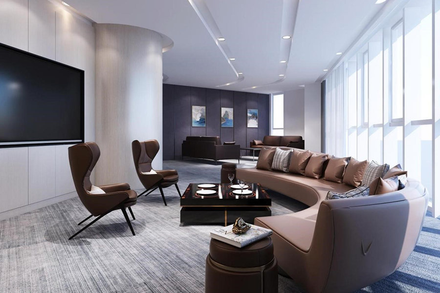 注重空間的開放流動和相對獨(dú)立,以意識形態(tài)打破空間封閉個體,重組空間關(guān)系,室外環(huán)境和室內(nèi)空間無界共生關(guān)系。設(shè)計(jì)表現(xiàn)不要被材質(zhì)所束縛,石材的肌體組合、木材的溫潤體貼,玻璃的有序無界,既蘊(yùn)含力量又平靜和諧。作品整體自信而不拘小節(jié),隱喻企業(yè)可持續(xù)發(fā)展的未來和國際化的品質(zhì)。