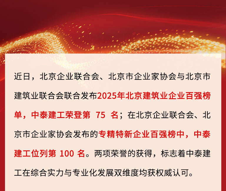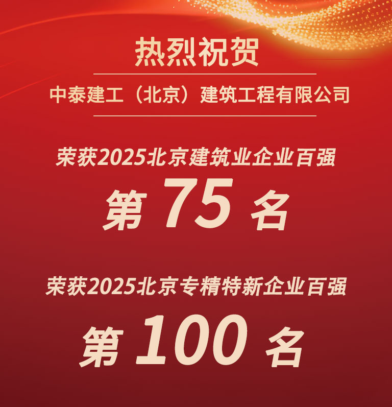 喜訊 | 中泰建工榮登2025北京建筑企業(yè)百強(qiáng)及專精特新企業(yè)百強(qiáng)“雙榜”!