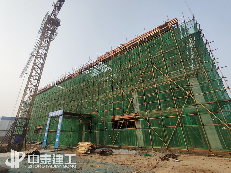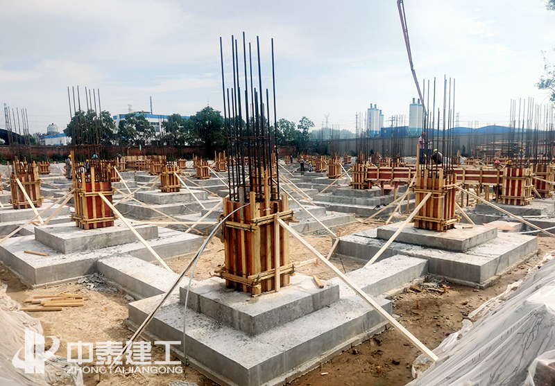 項(xiàng)目于2020年7月25日開工,經(jīng)過前期的不懈努力,在烈日炎炎的環(huán)境下,順利完成場地平整、土方開挖、基礎(chǔ)施工。2020年9、10月間,面對首層層高7.5米和二層層高超過8米的不利條件下,中泰建工嚴(yán)格按照經(jīng)專家論證通過的高大支模方案進(jìn)行模板施工,認(rèn)真檢查支撐體系。確保達(dá)到施工的安全情況下,順利完成模架支撐體系搭設(shè)。于2020年11月16日順利完成結(jié)構(gòu)封頂。