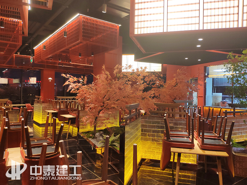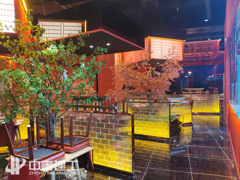 湘菜館花藝景觀及玻璃磚隔斷