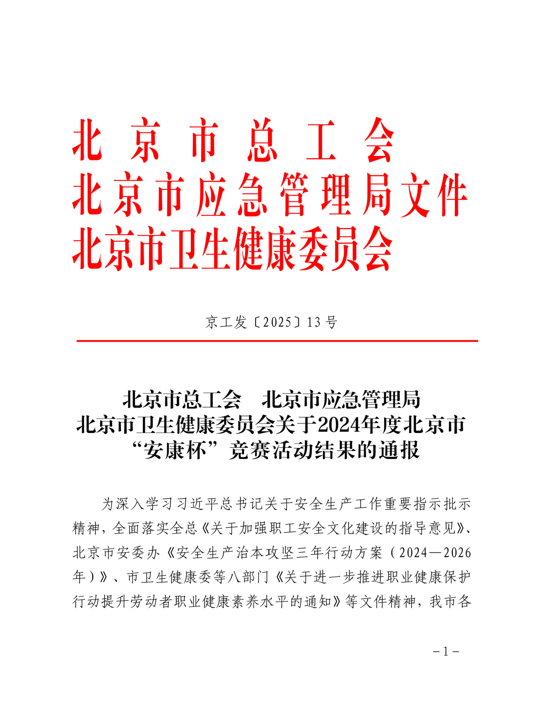 北京市“安康杯”競賽活動由市總工會、市應(yīng)急管理局、市衛(wèi)生健康委員會等部門聯(lián)合開展,為深入學(xué)習(xí)習(xí)近平總書記關(guān)于安全生產(chǎn)工作的重要指示批示精神,全面落實相關(guān)安全生產(chǎn)和職業(yè)健康等政策文件,通過競賽形式推動企業(yè)安全生產(chǎn)和工會勞動保護(hù)工作創(chuàng)新發(fā)展,提升職工安全健康意識和自我保護(hù)能力,維護(hù)職工的安全健康權(quán)益,為安全生產(chǎn)形勢貢獻(xiàn)力量。